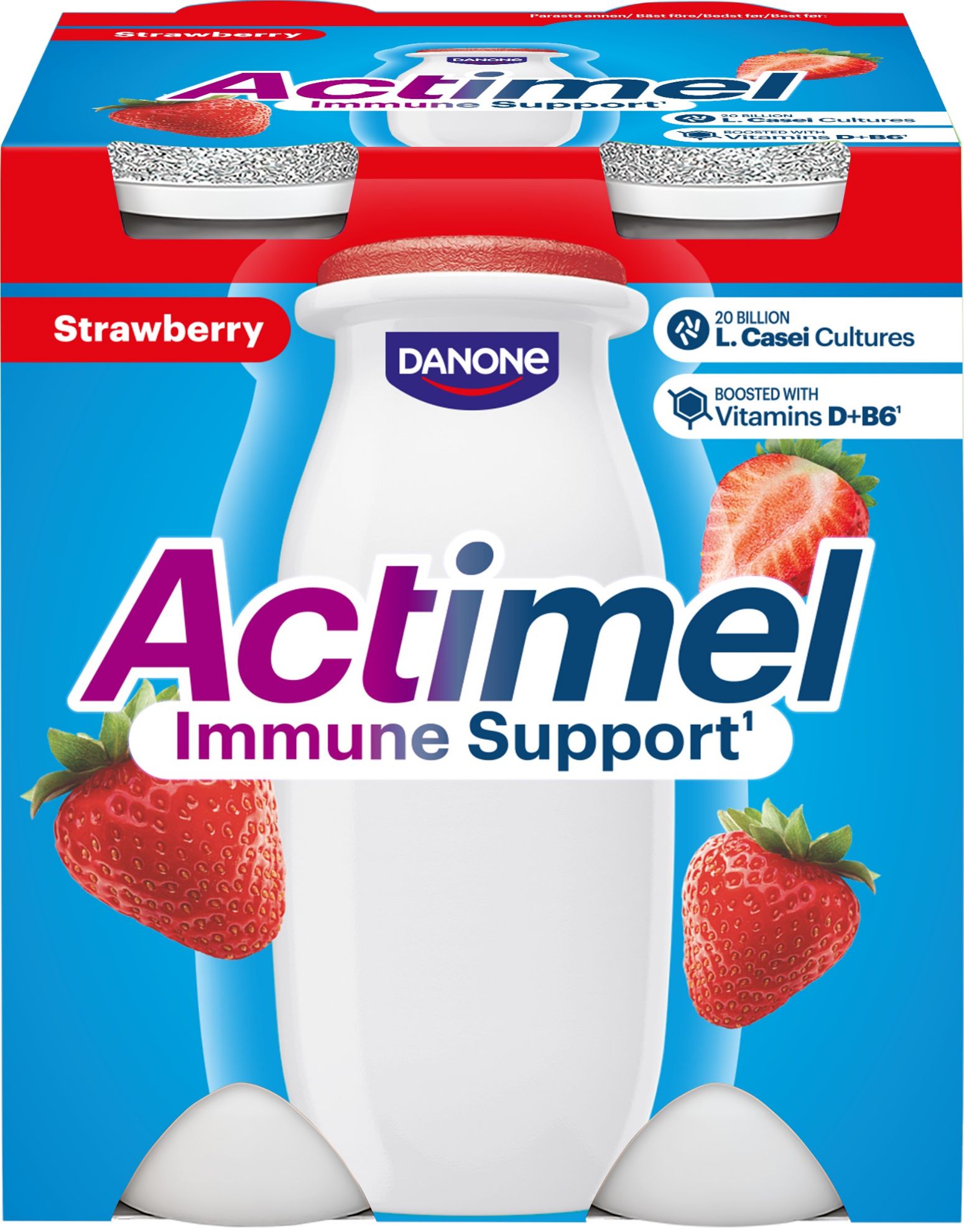 ACTIMEL jogurta dzēriens ar zemeņu garšu. Neto masa 4x100g.