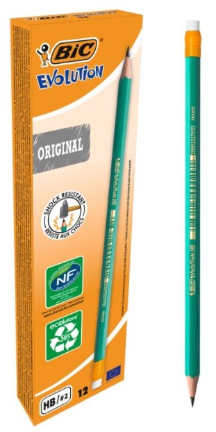 Grafīta zīmuļi, kas izgatavoti neizmantojot koku (ar sintētiskā sveka korpusu). Ar dzēšgumijas uzgali. Ja zīmulis tiek salauzts, neveidojas koka atlūzas. HB cietība. 50% no produkta kopējā svara veido pārstrādāti produkti.