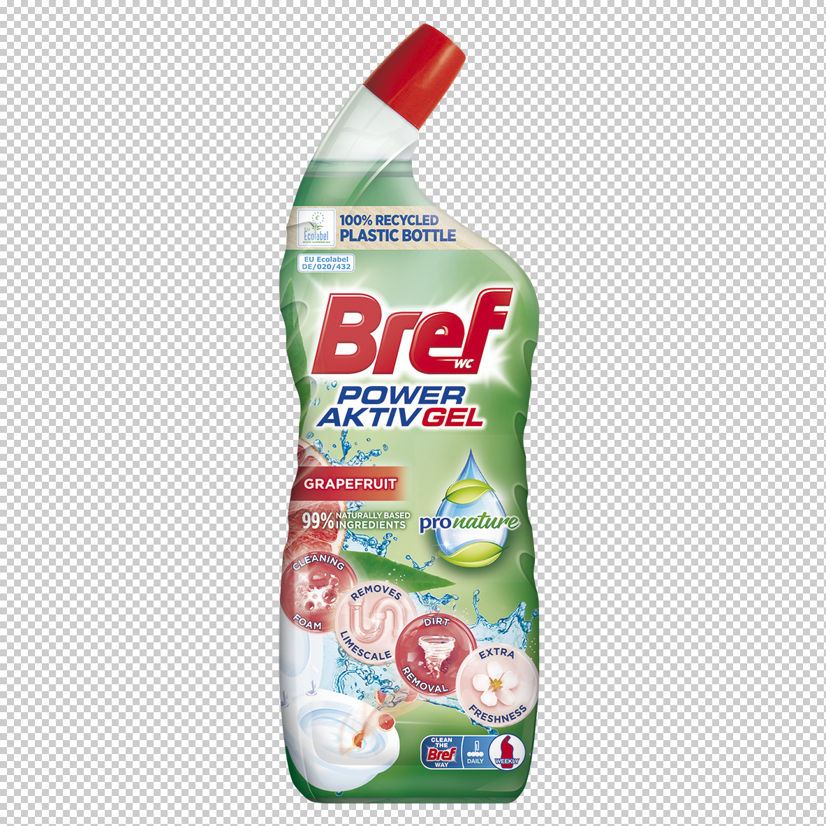 Bref Pro Nature tualetes tīrāmais līdzeklis: formula, kas iedarbojas pret kaļķakmeni, ir radīta no 90% dabīgam sastāvdaļām, ar dabas iedvesmota greipfrūta aromātu — īpašai svaiguma sajūtai. Pudele ir radīta no 50% pārstrādātas plastmasas. Noņemiet etiķeti un nododiet pudeli kārtējai pārstrādei.