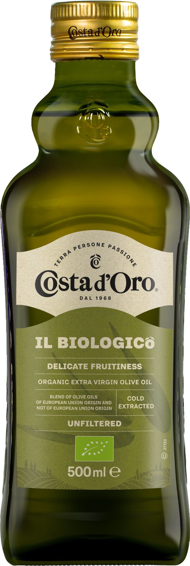 COSTA D'ORO nefiltrētā Organic Extra Virgin olīveļļa, 500ml