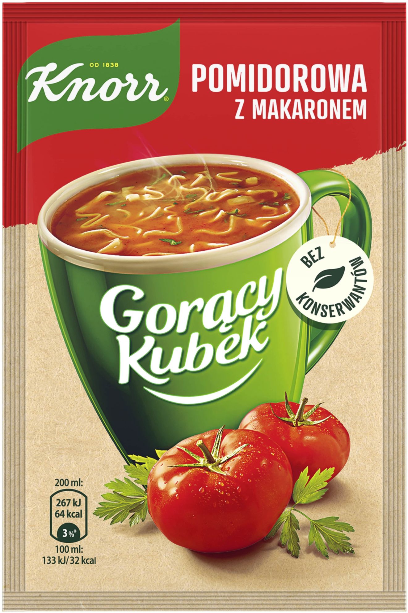 KNORR CAS tomātu zupa ar nūdelēm, 19g. Tomātu koncentrāts (26%), makaroni (24%), KVIEŠU milti, sāls, ciete, cukurs, rauga ekstrakts, (satur PIENA atvasinājumus), maltodekstrīns, palmu tauki, laktoze, sīpols, oregano, pētersīļi, baziliks, bietes, aromatizētāji.